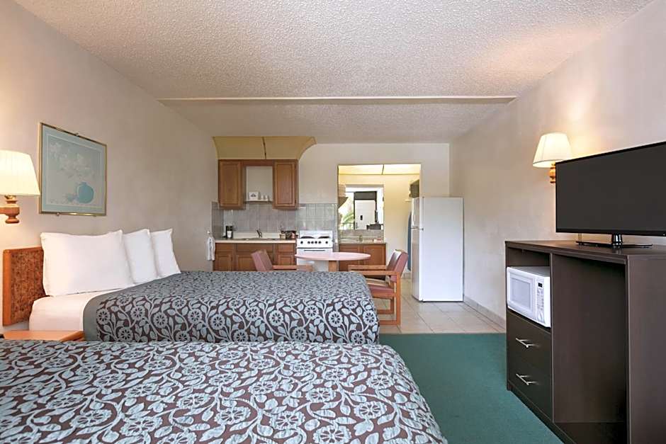 This room includes air conditioning, a cable TV, and a kitchenette.